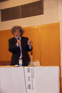 基調講演を行った蕭錦文氏は、日本軍に志願して、出征先で目にした植民地の状況と、日本統治下の台湾を比べ、台湾の教育の充実に感謝の気持ちを持ったと語った。